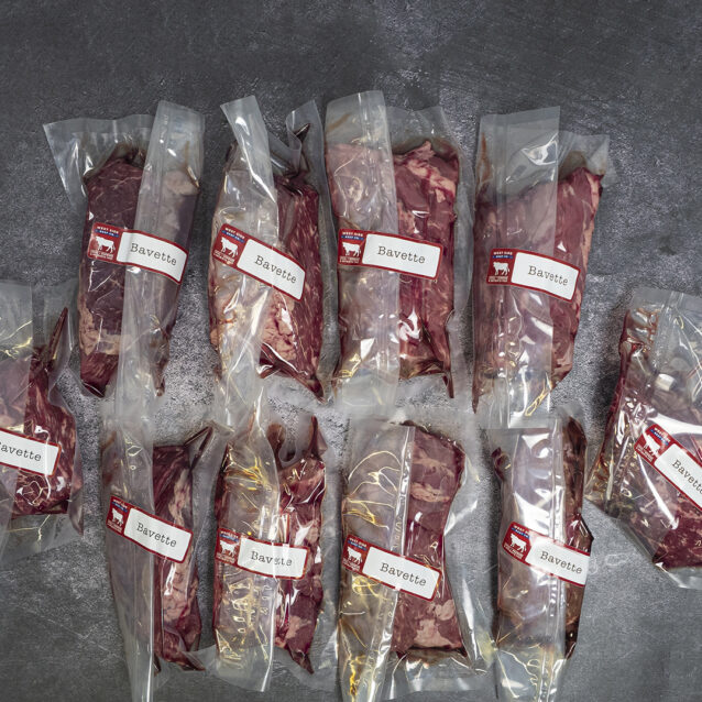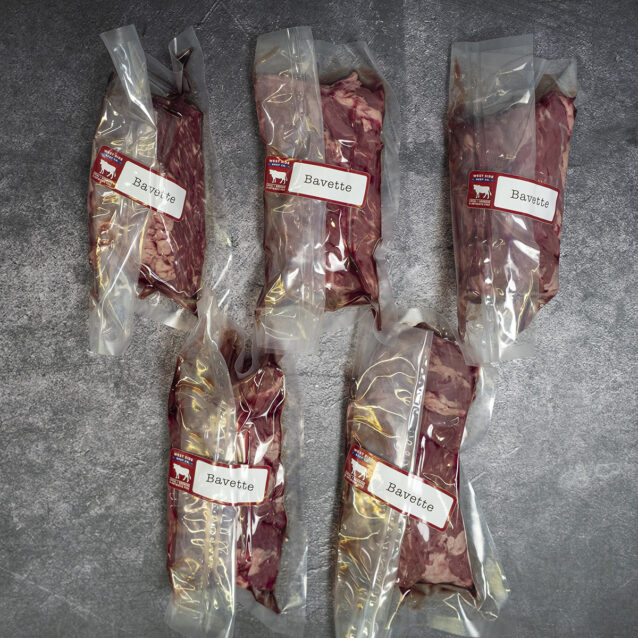 Similar to flank steak, bavette is a very flavourful cut. It has a slightly looser grain allowing a marinade to penetrate even further, but is slightly thicker allowing for a little more time on the grill to get a nice char. This steak is best cooked medium.