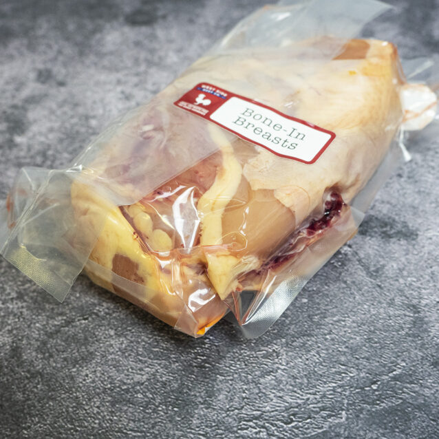 The chicken breast has gotten a bad reputation for being dry and flavourless. But when you start with the best quality chicken and proper cooking methods, chicken breast can be extremely delicious. Our chicken breast is available bone-in with the skin on.