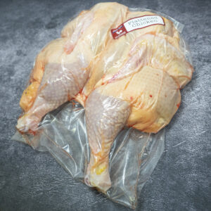 Our flattened chicken is the perfect way to quickly roast or grill a whole chicken. The backbone is removed so the chicken sits flat cutting the cooking time in half. Great for a summer BBQ or a weeknight meal.