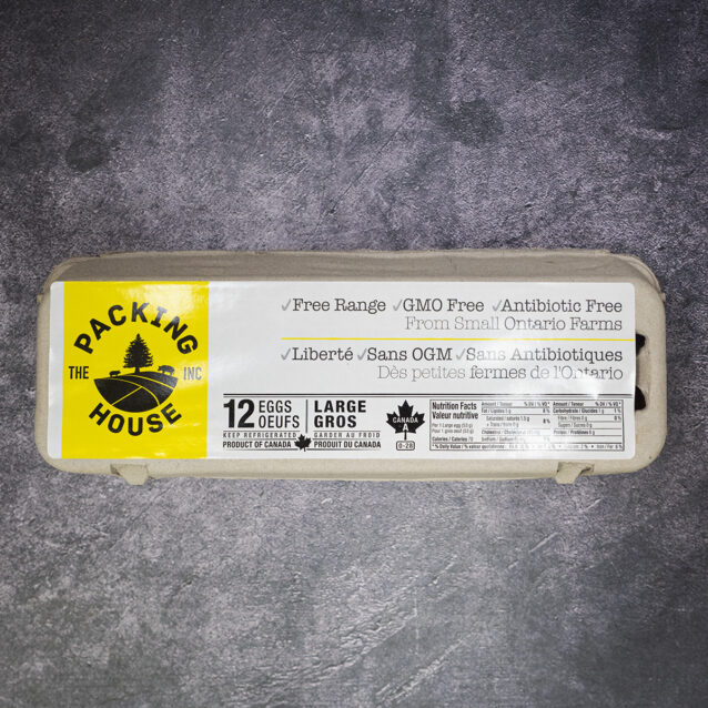 We can’t say enough about the superior flavour of our eggs! Supplied fresh weekly by The Packing House, these eggs come from small flocks of heritage breed chickens in southwestern Ontario, raised on custom, herbal & vegetable enriched feed to produce a dark orange yolk, similar to the pasture-raised eggs available in Europe and Japan. The flavour is much richer than a traditional egg and packed with nutrients from our their custom feed.