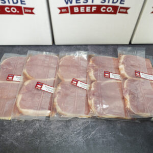 To us, pork is never the other white meat! Our pork is heritage breed, raised without the use of hormones or antibiotics. Its marbling and colour is equivalent to a good beef steak. Our pork is flavourful and buttery.